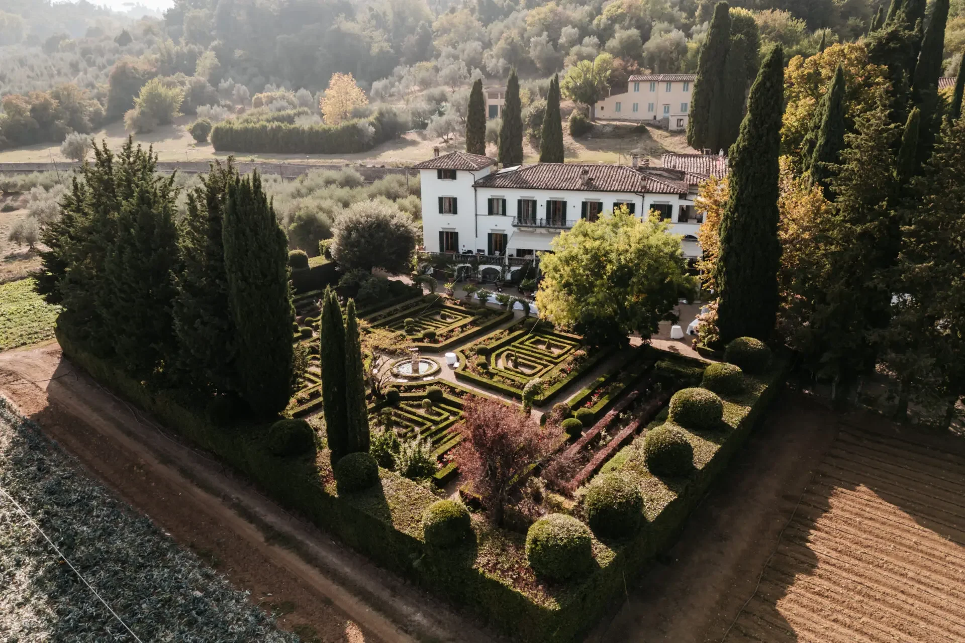 The villa's historic architecture, lush grounds, and iconic Italian garden maze create the perfect setting for a Tuscan celebration with friends and family.