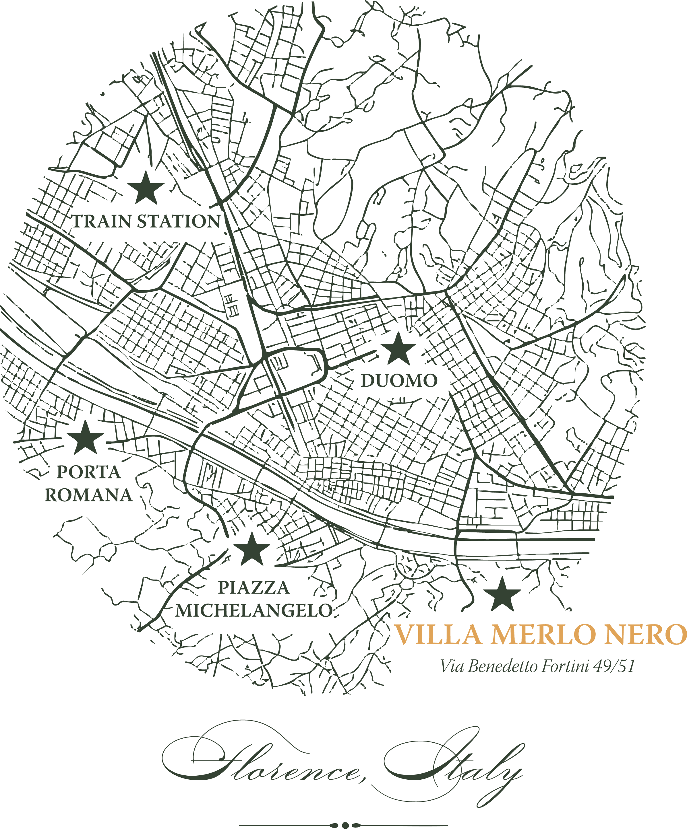 If you are booking independently, we recommend staying in the Oltrarno neighborhood near Porta Romana. It offers beautiful local charm, easy taxi access, and a short drive to Villa Merlo Nero.
